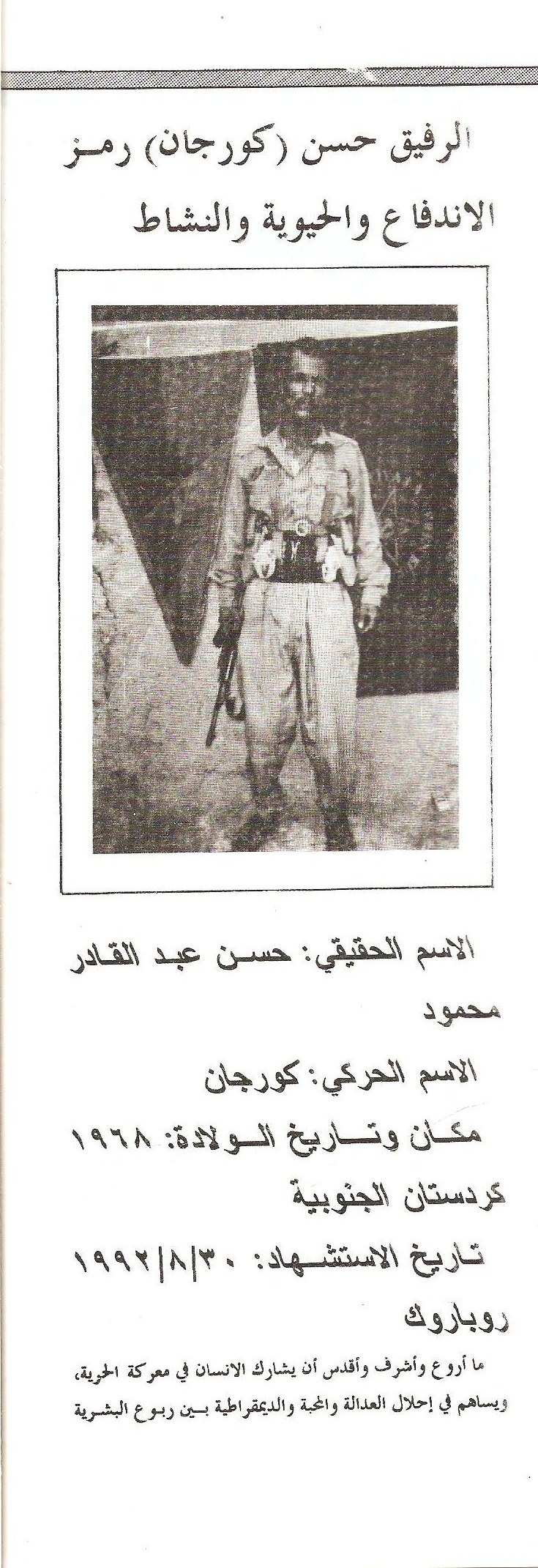 الرفيق حسن عبد القادر محمود – كورجان 1992