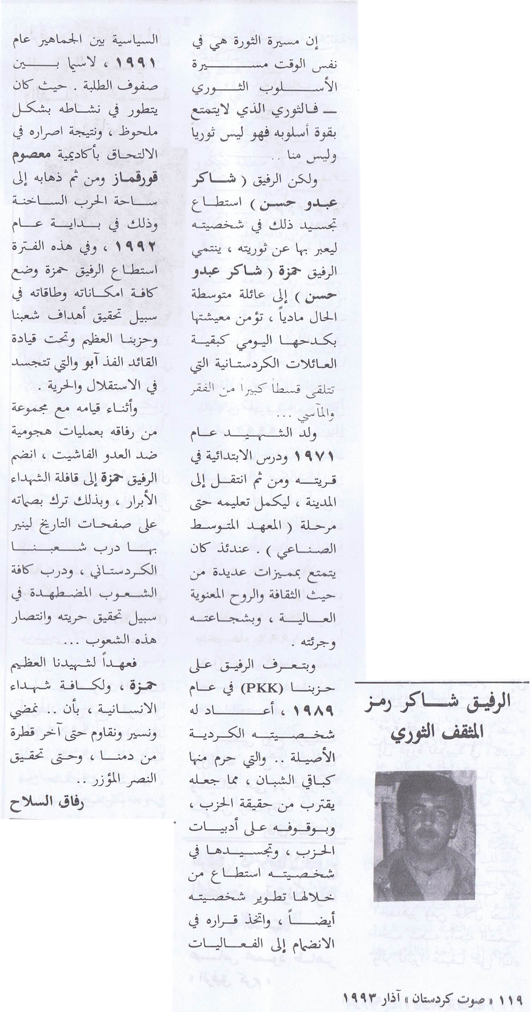 عهداً لك أيها الشهيد شاكر حسن أن نتابع مسيرتك النضالية حتى آخر رمق من حياتنا، لتحقيق العدالة والمساواة وبناء المجتمع الديمقراطي الحر.