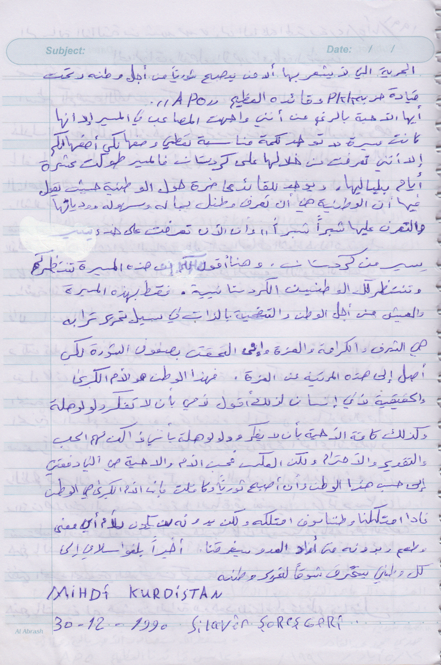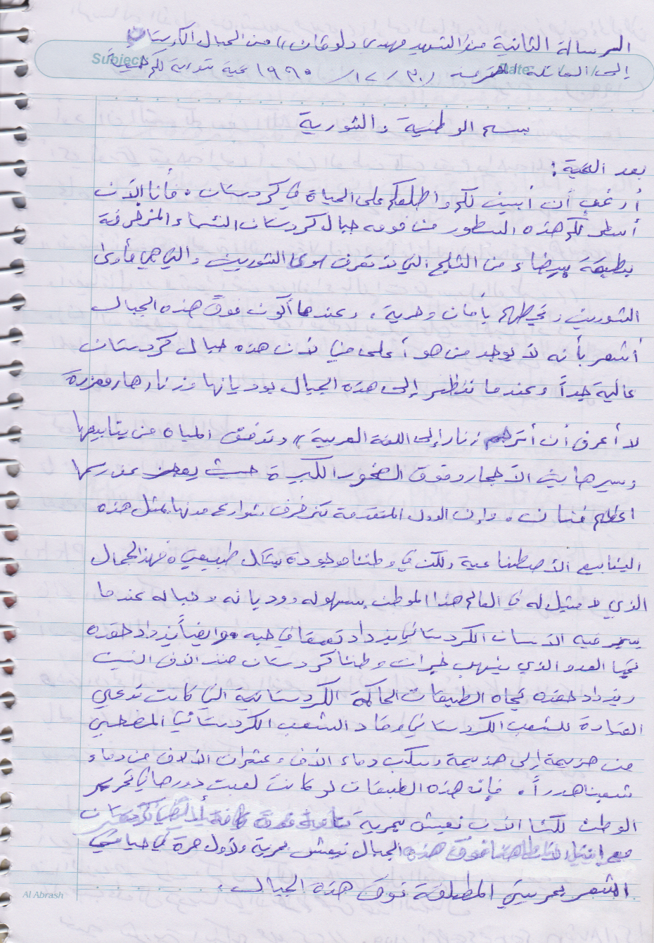 محل وتاريخ الولادة: قرية تل خنزير ناحية عامودا 1965