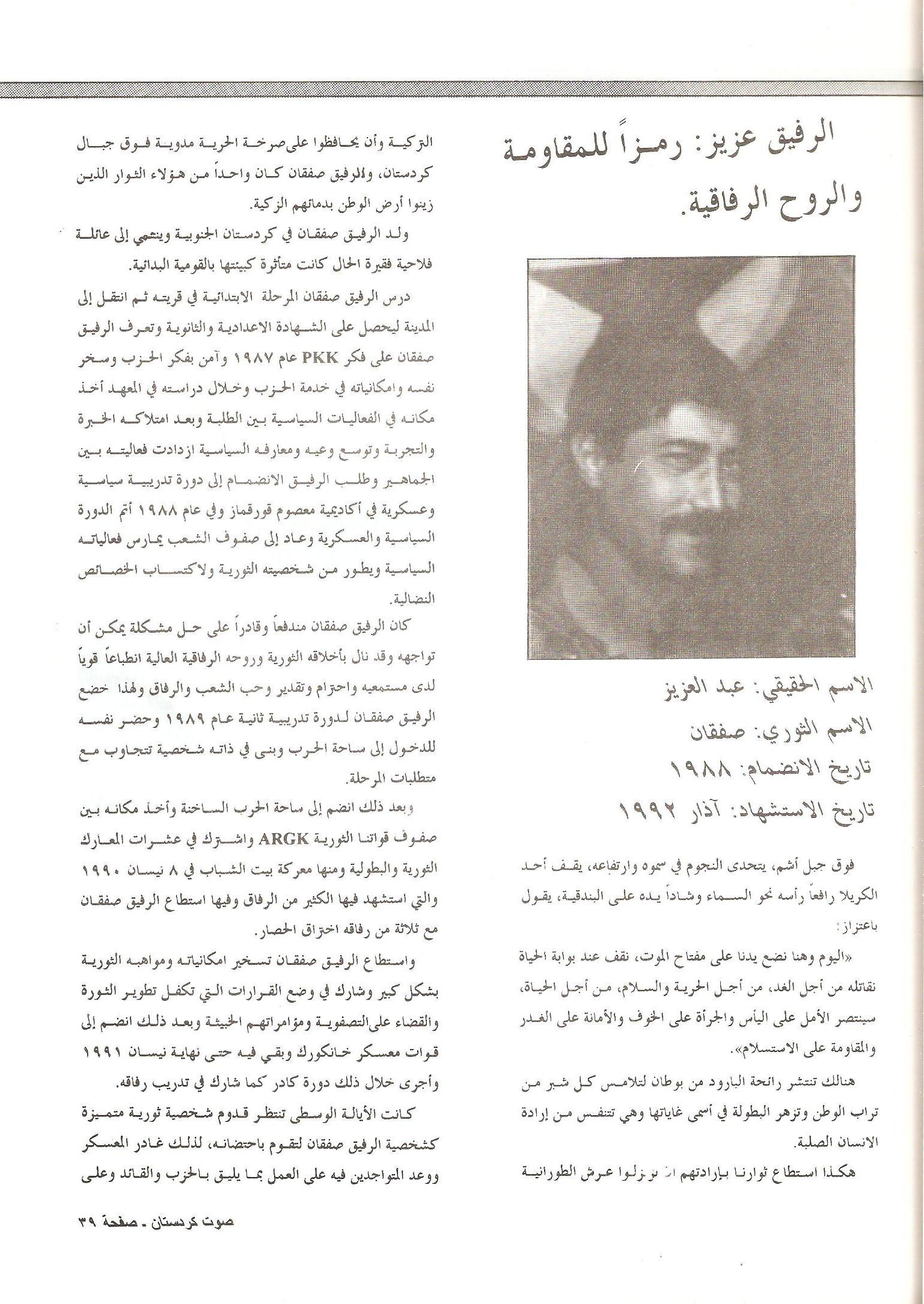 عهداً لك أيها الشهيد صفقان أن نتابع مسيرتك النضالية حتى آخر رمق من حياتنا، لتحقيق العدالة والمساواة وبناء المجتمع الديمقراطي الحر.