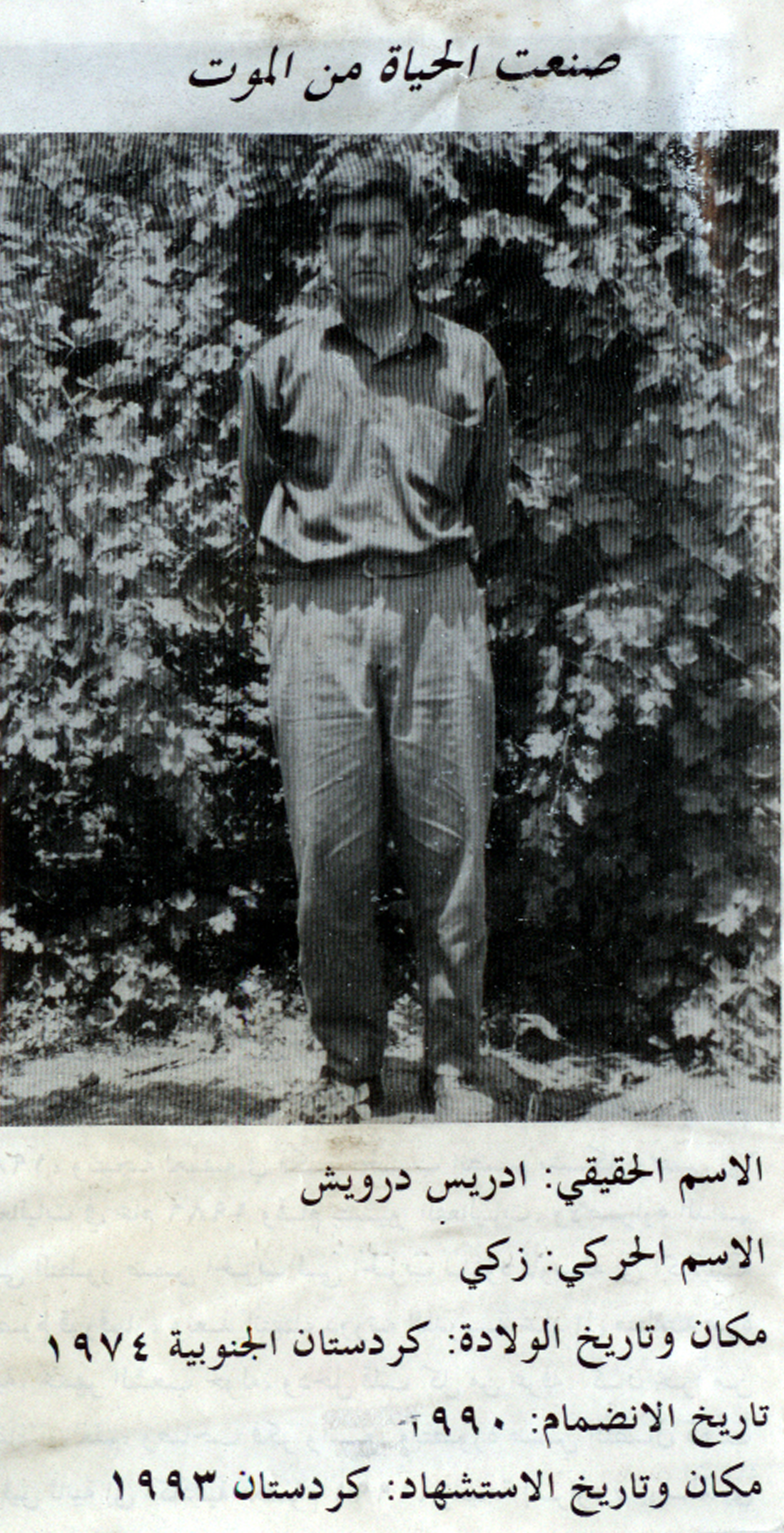 تاريخ ومكان الاستشهاد: 1993كردستان الجنوبية منطقة زاغروس ( أورمار)