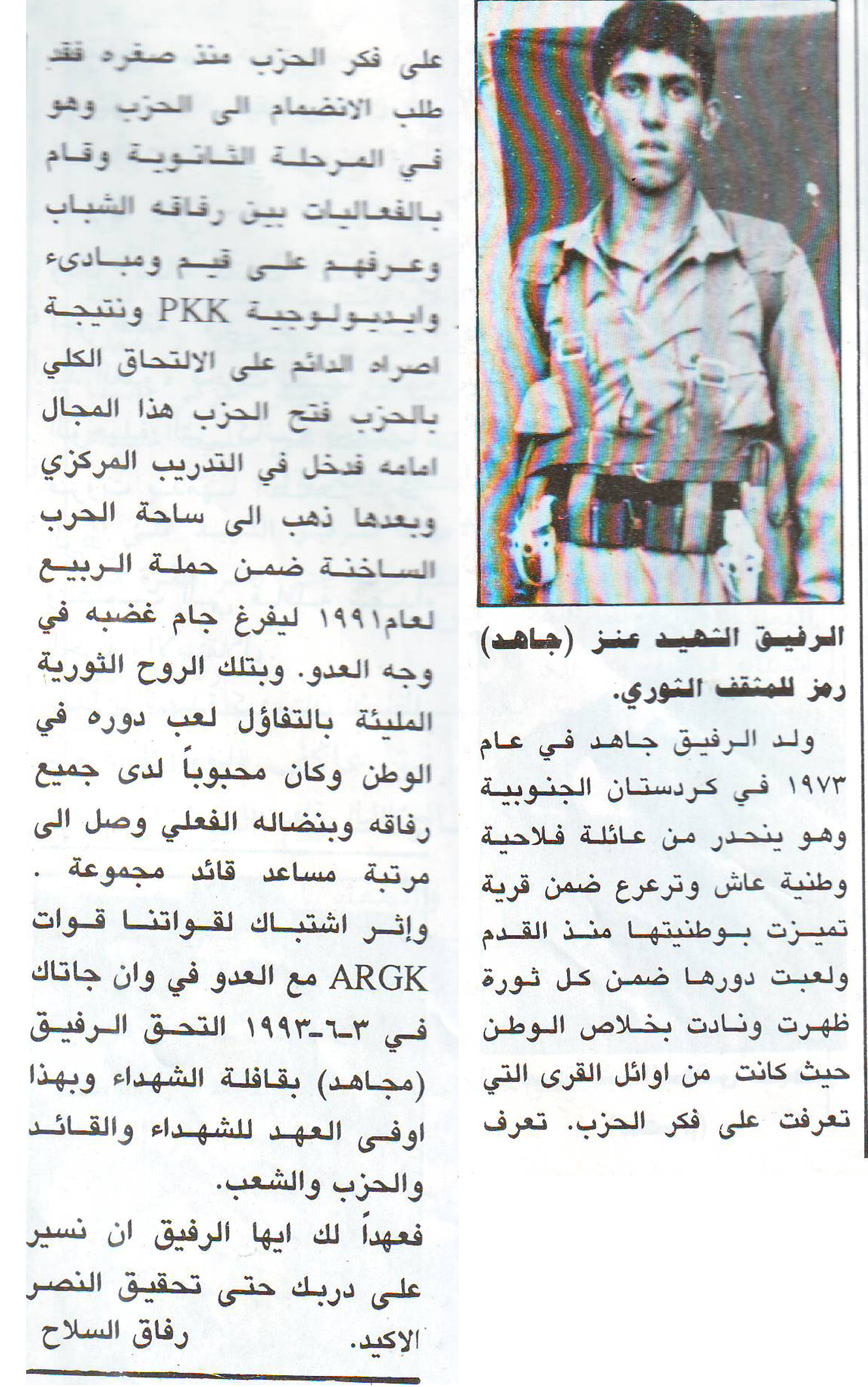 شهداؤنا هم الأصحاب الحقيقيون للحرية والبناء الديمقراطي في كردستان، ناضلوا جنباً إلى جنب في سبيل تحقيق الأخوة والتحرر، ونالوا مرتبة الشهادة ليصنعوا أسس كونفدرالية الشرق الأوسط الديمقراطي.
