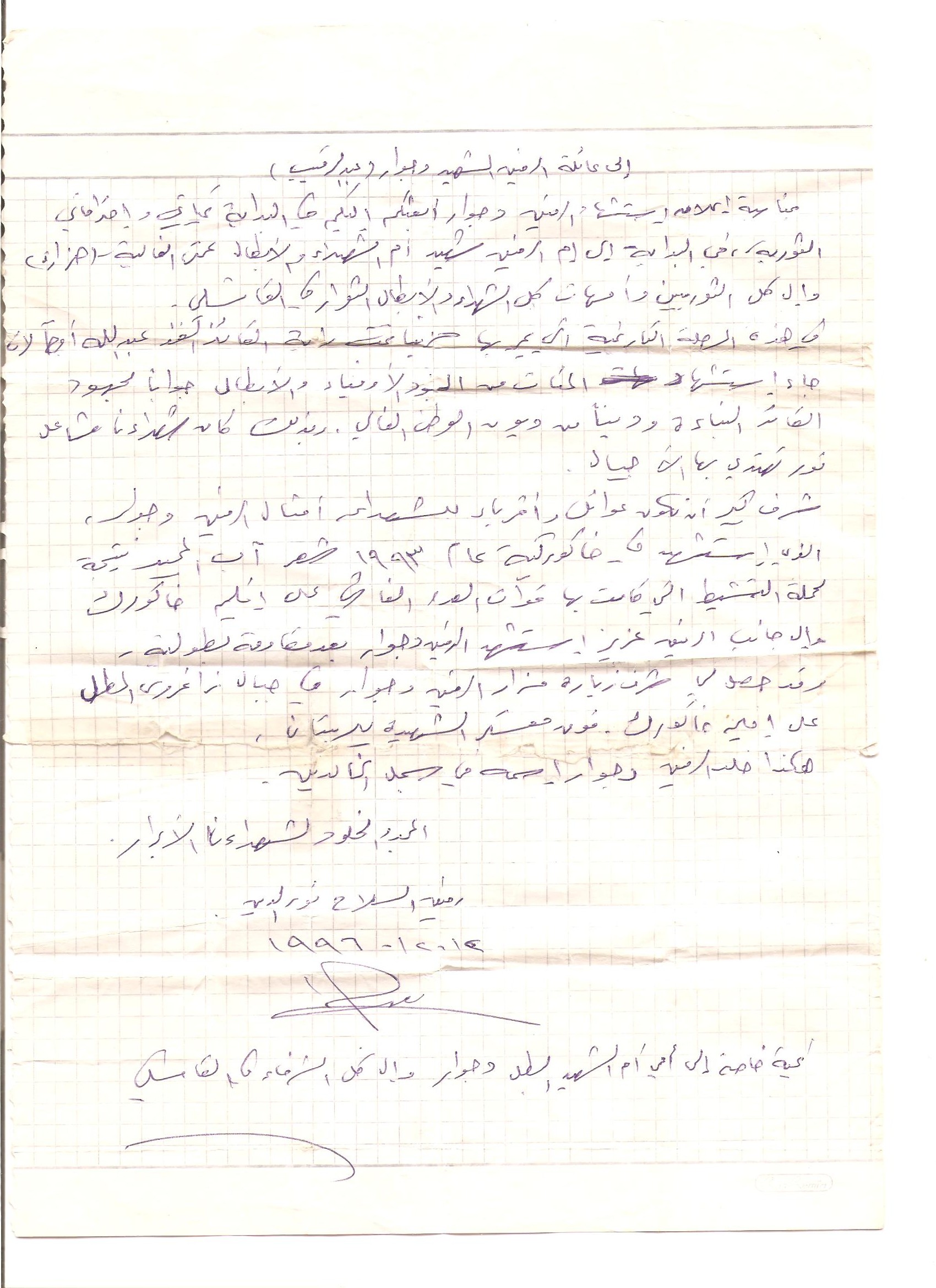 عهداً لك أيها الشهيد دجوار أن نتابع مسيرتك النضالية حتى آخر رمق من حياتنا، لتحقيق العدالة والمساواة وبناء المجتمع الديمقراطي الحر.