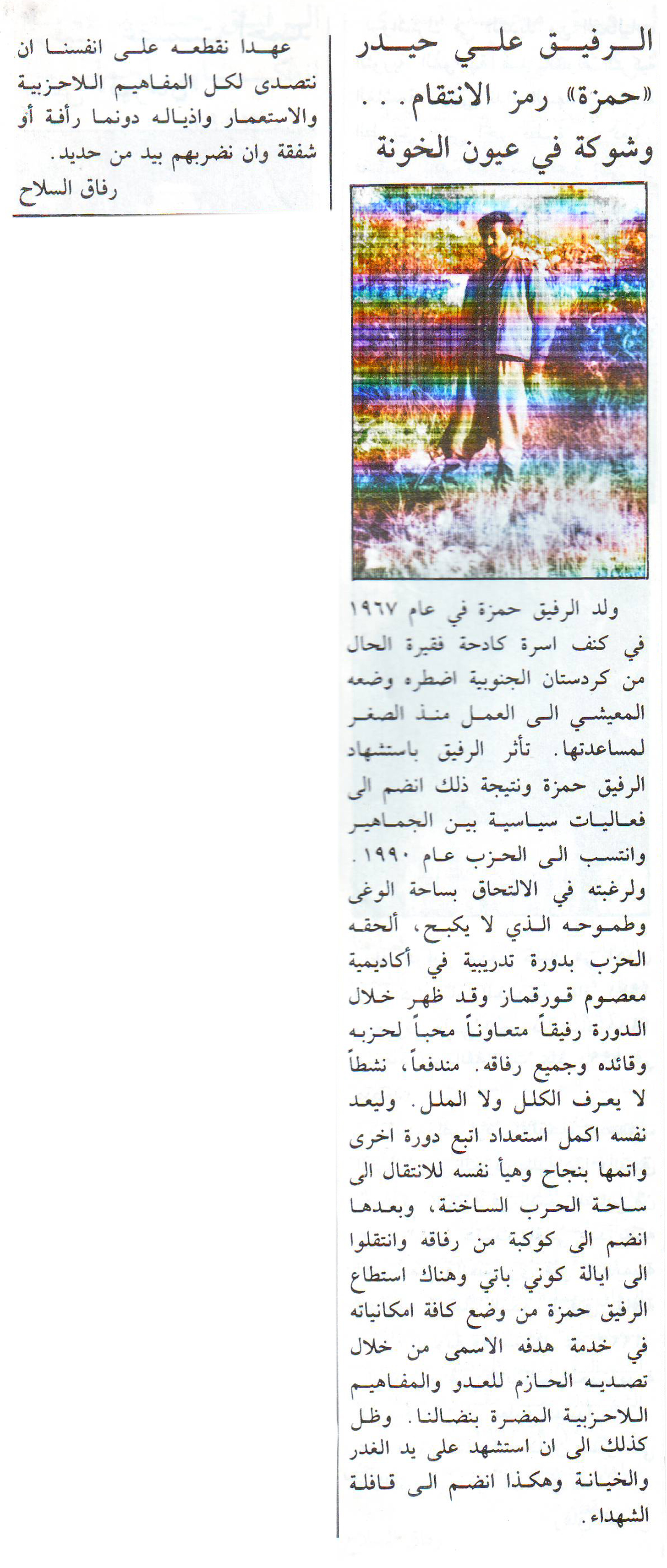 عهداً لك أيها الشهيد أن نتابع مسيرتك النضالية حتى آخر رمق من حياتنا، لتحقيق العدالة والمساواة وبناء المجتمع الديمقراطي الحر.