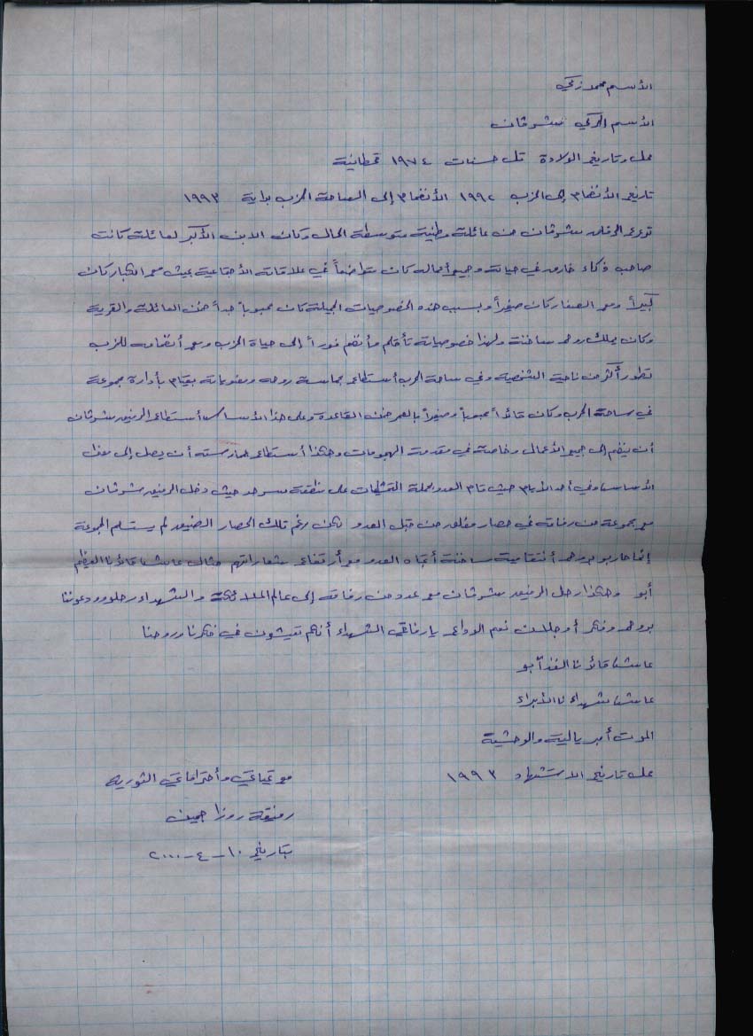 مكان وتاريخ الاستشهاد: 13/4/1994 سرحد (تندورك)