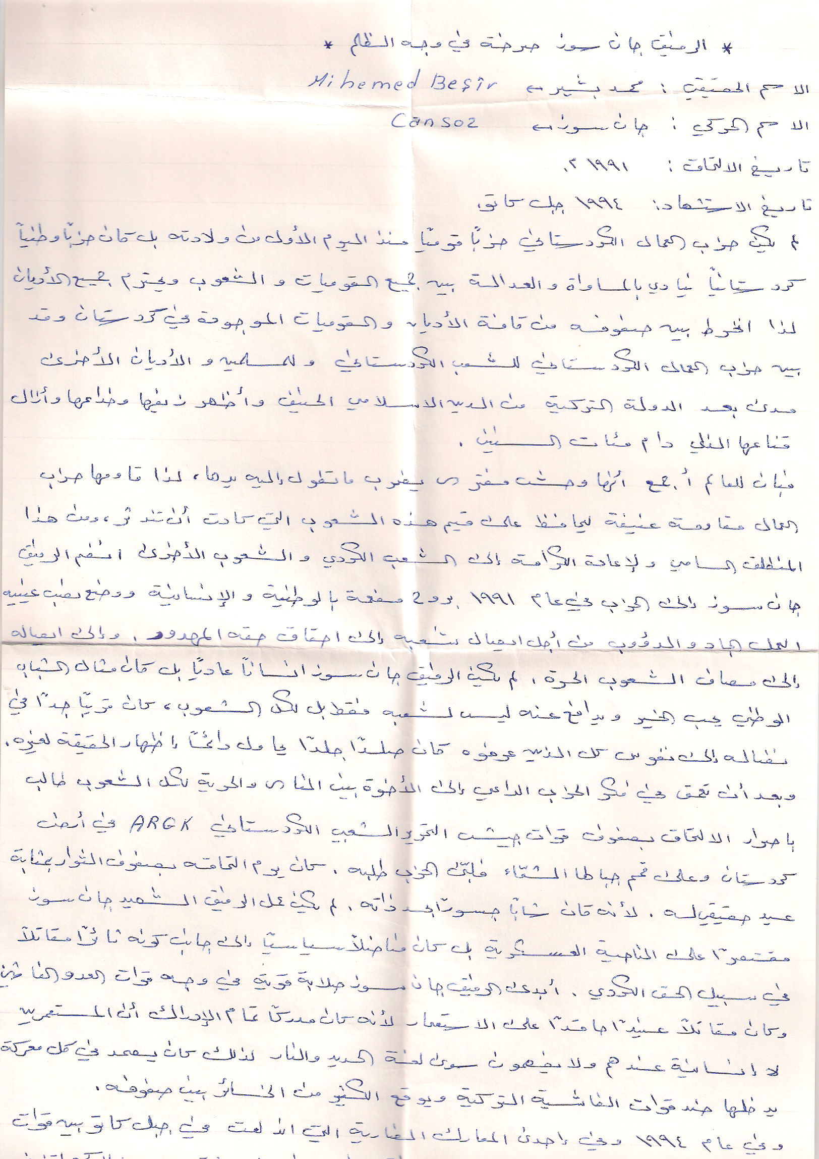 تاريخ ومكان الاستشهاد: 18/5/1994 أيالة بوطان -هكاري