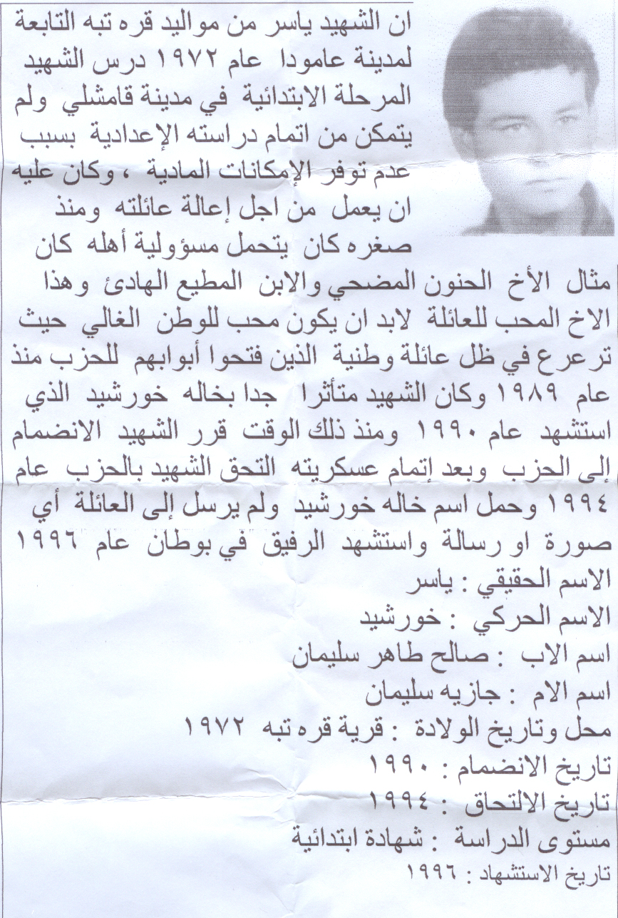 محل وتاريخ الولادة: قرية قره تبه- ناحية عامودا 1972