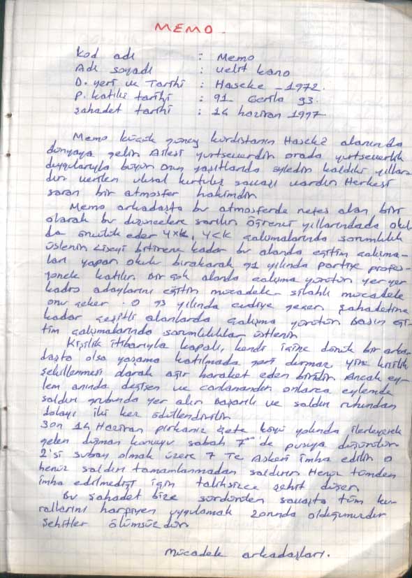 تاريخ ومكان الاستشهاد: 14/6/1997 أيالة بوطان منطقة هكاري