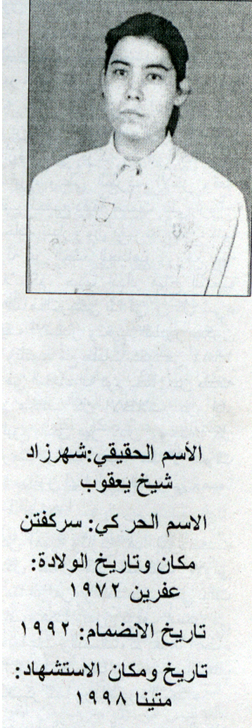 تاريخ ومكان الاستشهاد : 12/1999ايالة بهدينان منطقة متينا