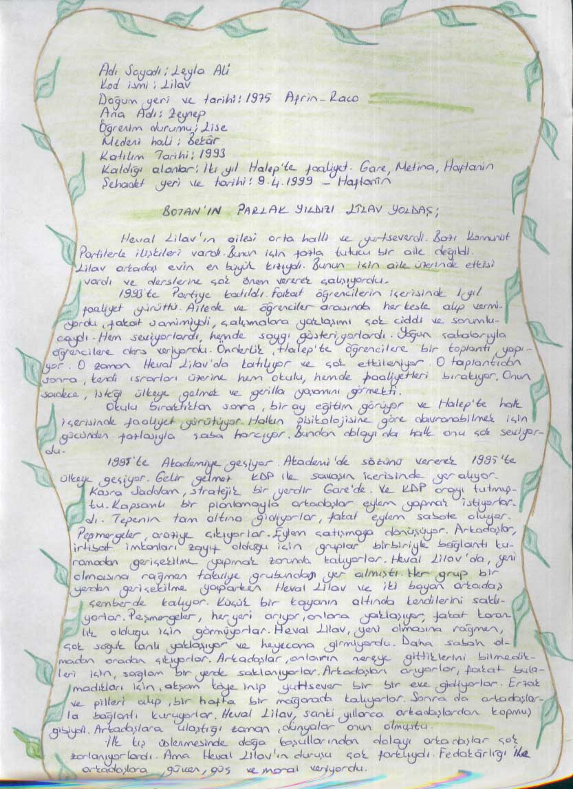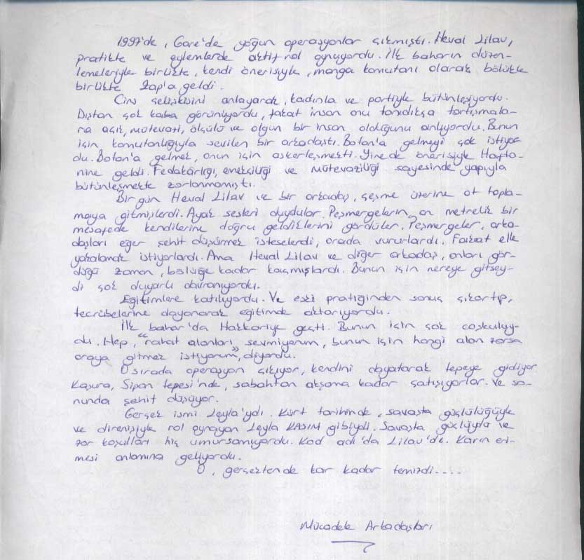 عهداً لك أيتها الشهيدة ليلاف أن نتابع مسيرتك النضالية حتى آخر رمق من حياتنا، لتحقيق العدالة والمساواة وبناء المجتمع الديمقراطي الحر.