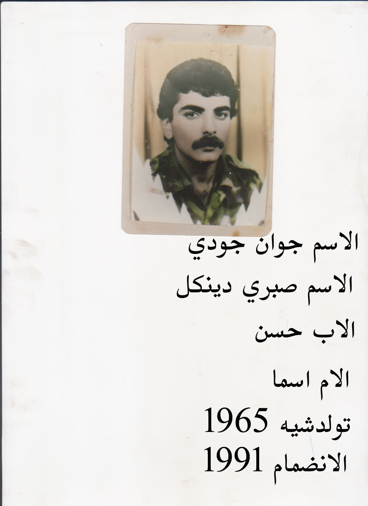 محل وتاريخ الولادة: عفرين شيخ الحديد 1965 =1/10/1966
