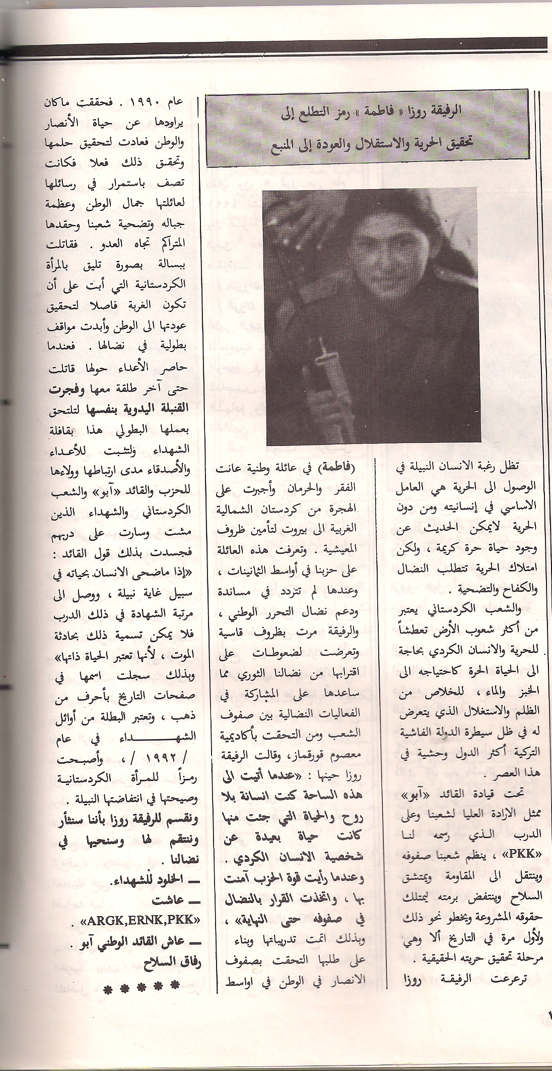 عهداً لك أيتها الشهيدة روزا أن نتابع مسيرتك النضالية حتى آخر رمق من حياتنا، لتحقيق العدالة والمساواة وبناء المجتمع الديمقراطي الحر.