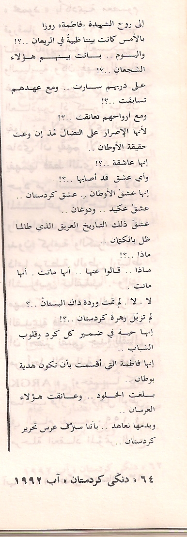 شهداؤنا هم الأصحاب الحقيقيون للحرية والبناء الديمقراطي في كردستان، ناضلوا جنباً إلى جنب في سبيل تحقيق الأخوة والتحرر، ونالوا مرتبة الشهادة ليصنعوا أسس كونفدرالية الشرق الأوسط الديمقراطي.