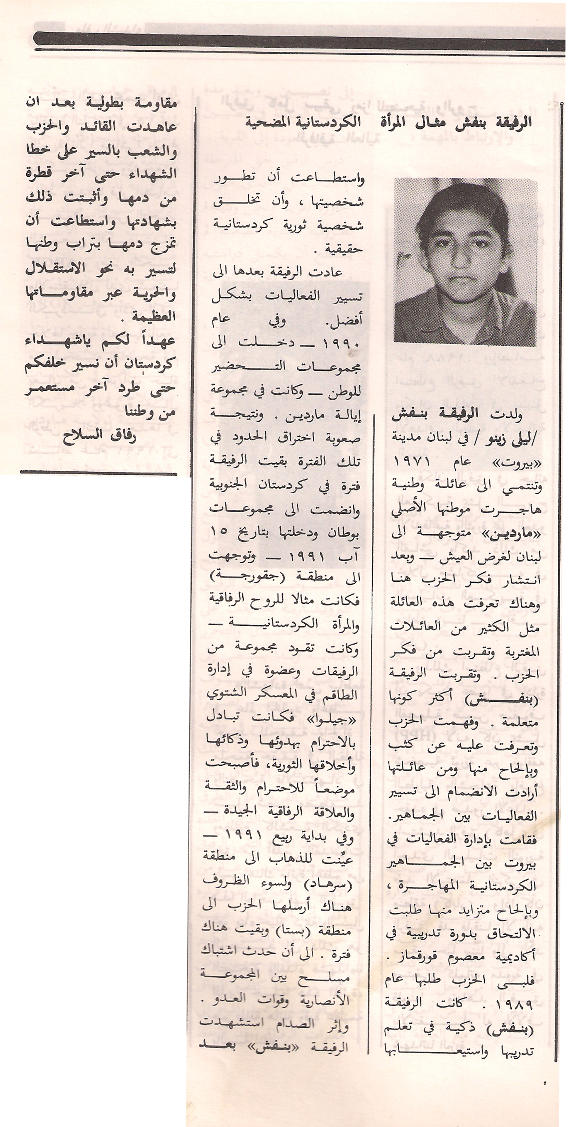 عهداً لك أيتها الشهيدة بنفش أن نتابع مسيرتك النضالية حتى آخر رمق من حياتنا، لتحقيق العدالة والمساواة وبناء المجتمع الديمقراطي الحر.