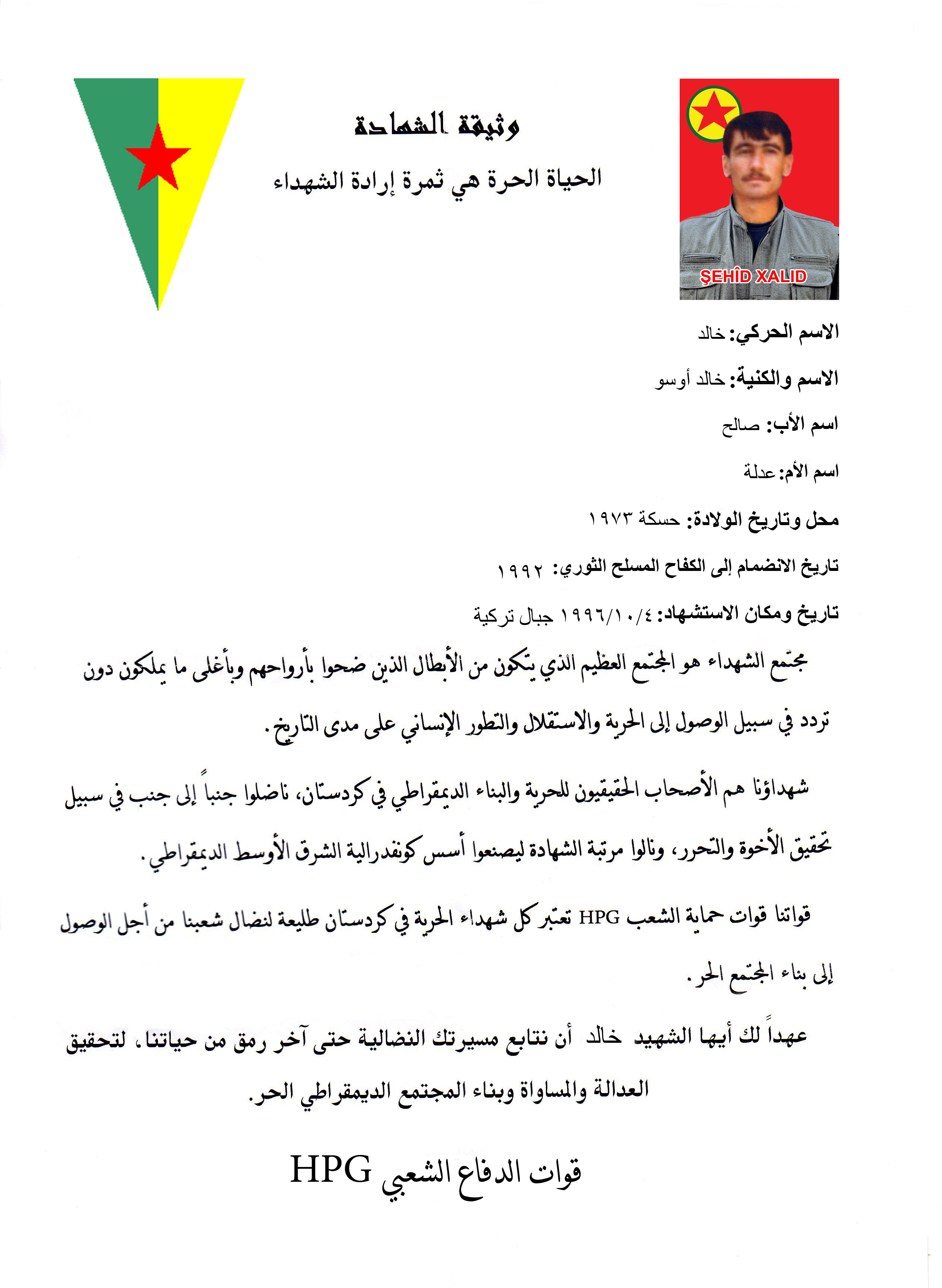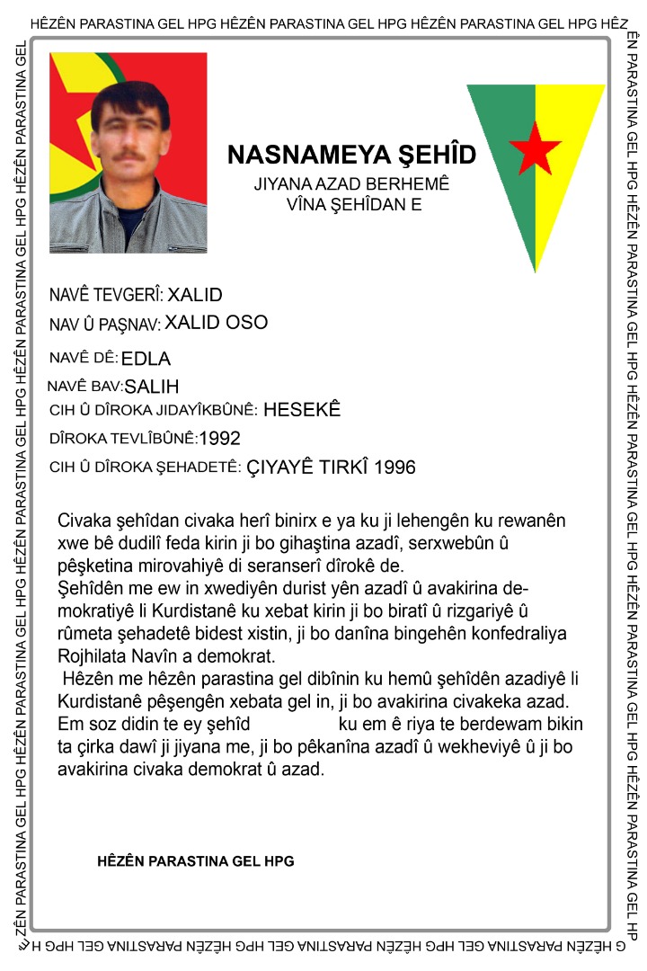 عهداً لك أيها الشهيد خالد اوسو أن نتابع مسيرتك النضالية حتى آخر رمق من حياتنا، لتحقيق العدالة والمساواة وبناء المجتمع الديمقراطي الحر.